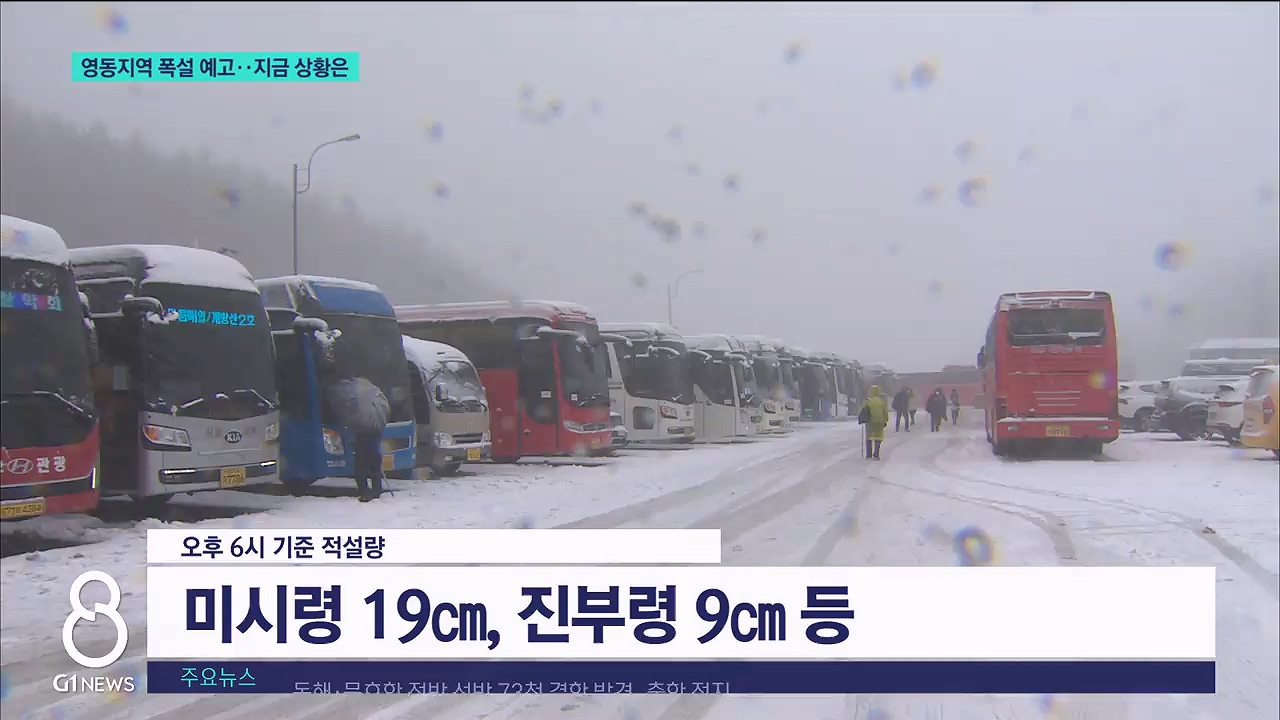 현재까지 미시령 19cm, 진부령 9cm, 대관령 5.4cm 등의 눈이 쌓여있는 상태로,