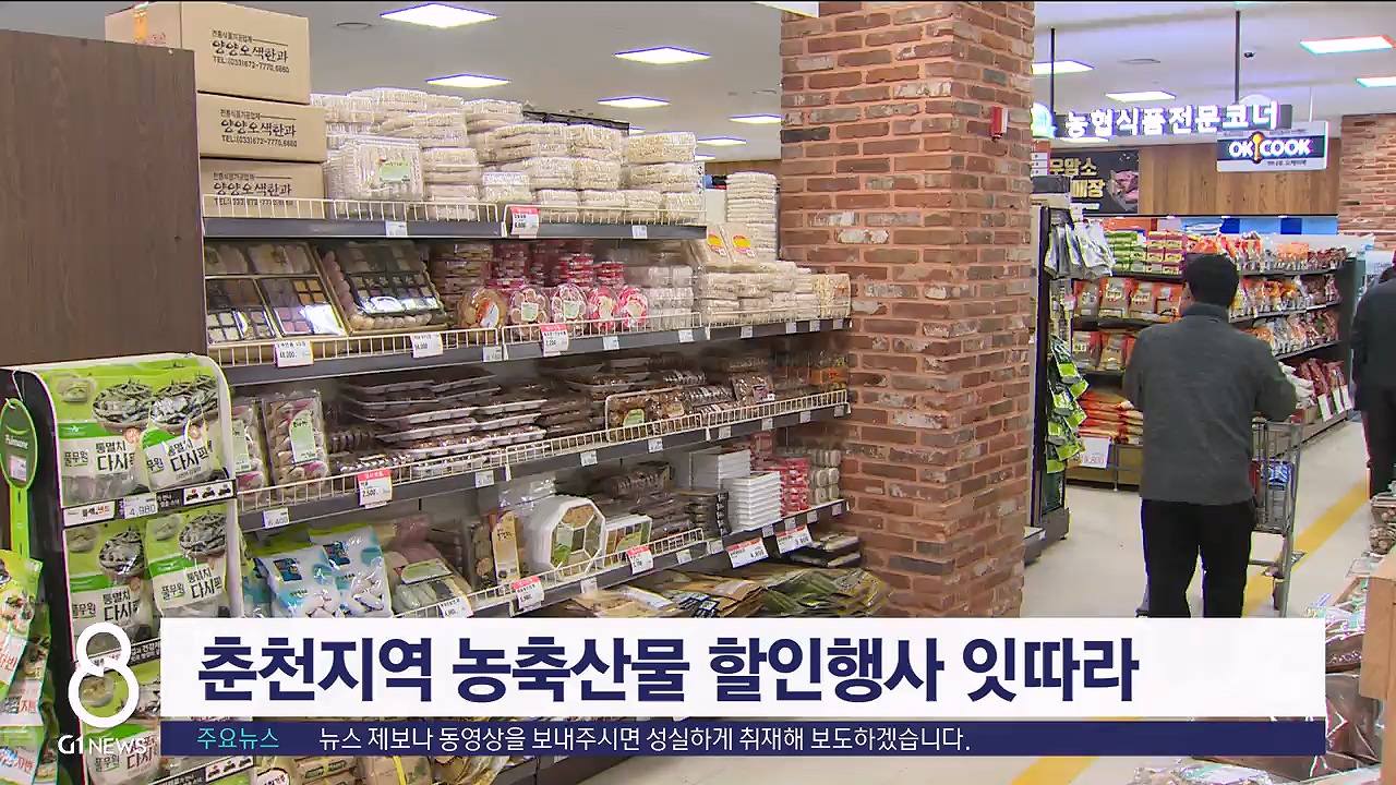 설 명절을 앞두고 춘천에서 대규모 농축산물 할인 행사가 잇따라 펼쳐집니다.