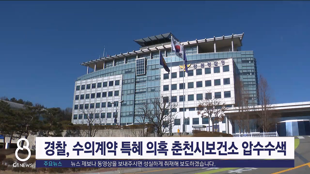 강원경찰청 반부패경제범죄수사대는 오늘 오후 춘천시보건소 직원 A씨의 사무공간과 A씨가 물품구매 계약을 몰아준 것으로 의심되는 업체를 대상으로 압수수색을 벌였습니다.