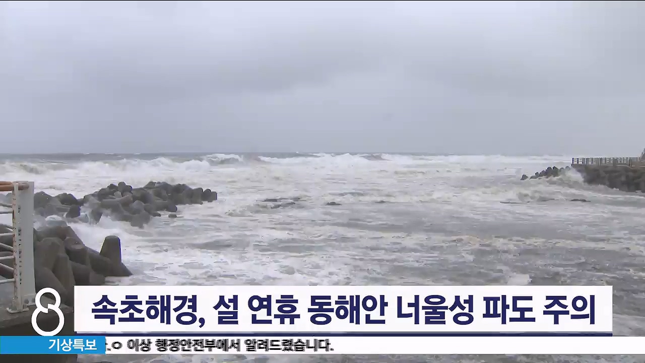 설 연휴 기간 동해안에 강한 바람과 너울성 파도가 예상돼 관광객과 지역 주민들의 각별한 주의가 요구됩니다.