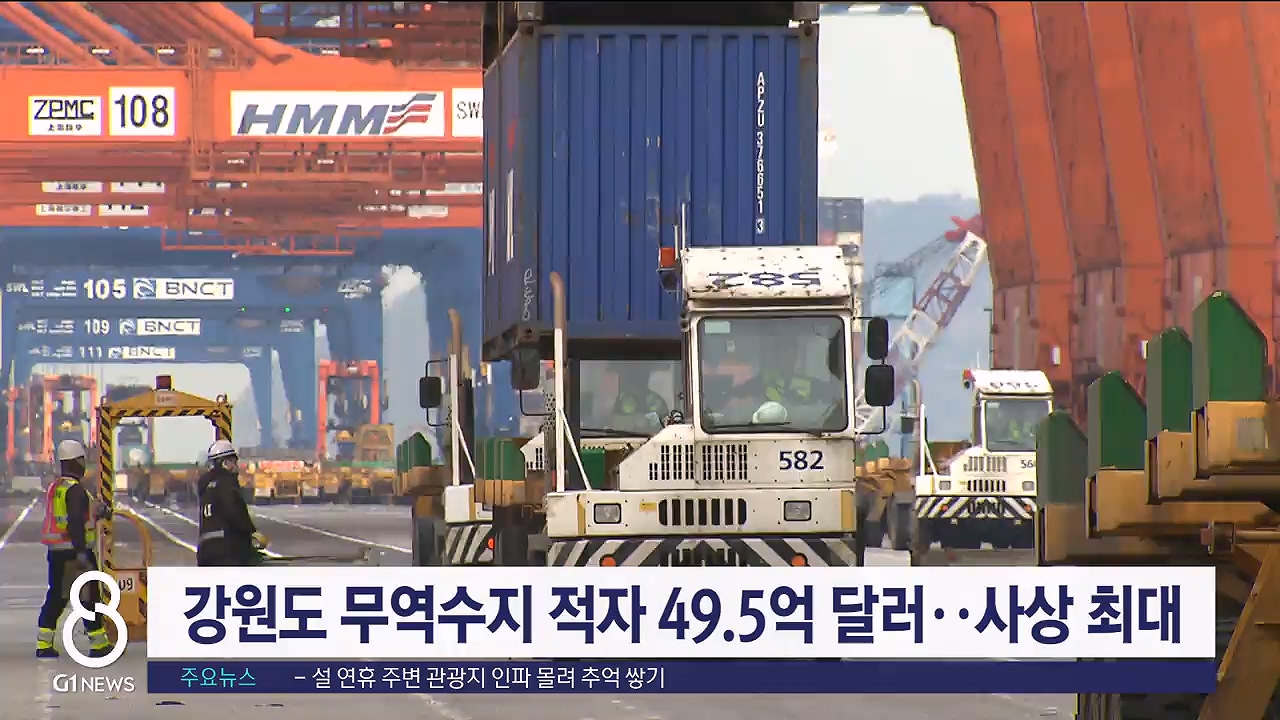 한국무역협회 강원지역본부가 발표한 '2022년 12월 강원지역 수출입 동향'을 보면, 지난해 도내 무역수지 적자는 49억 5,607달러로,