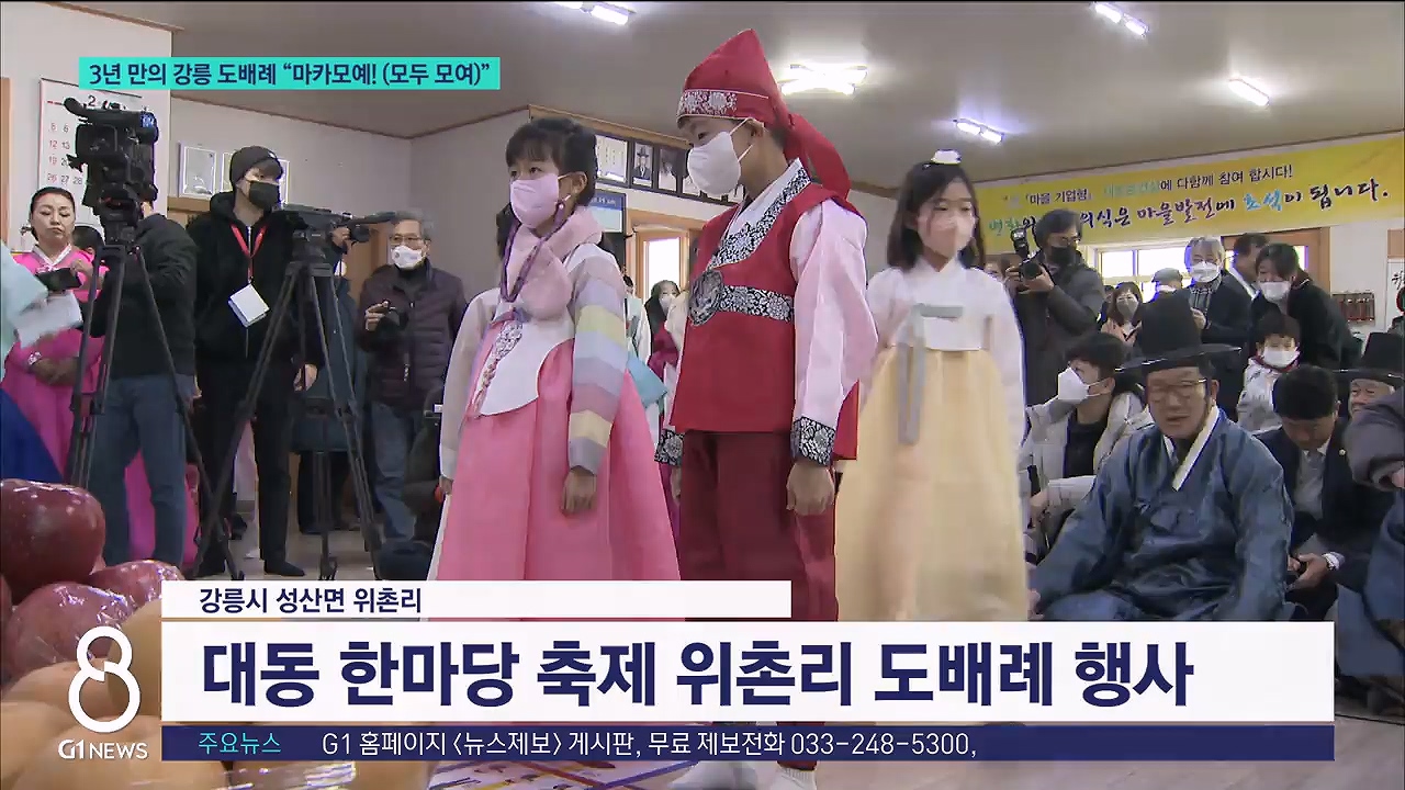 오늘 강릉에서는 주민들이 한 자리에 모여 마을 어르신께 합동세배를 드리는 '도배례' 행사가 열렸습니다.