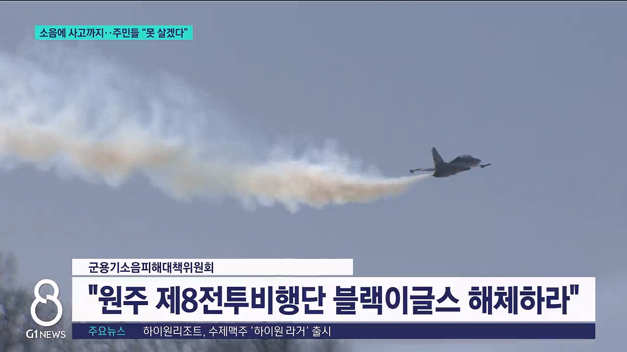 원주에 주둔하고 있는 공군 특수비행팀 블랙이글스의 소음으로 인근 주민들이 수십 년째 고통을 호소하고 있습니다.