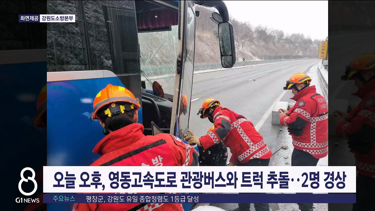 영동고속도로서 관광버스와 트럭 추돌..2명 경상