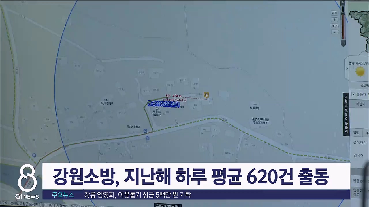 지난해 강원도에서 하루평균 1,200여건의 119 신고가 접수됐고, 이중 6백여 건을 출동한 것으로 나타났습니다.