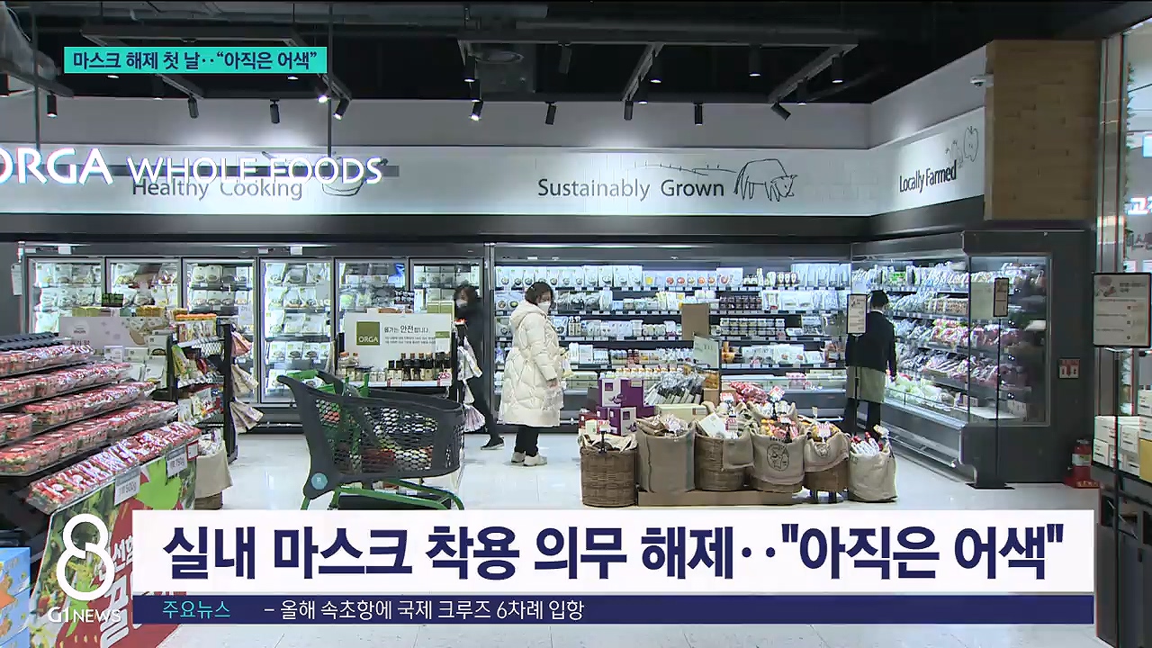 오늘부터 실내 마스크 착용이 의무에서 권고로 바뀌었습니다.