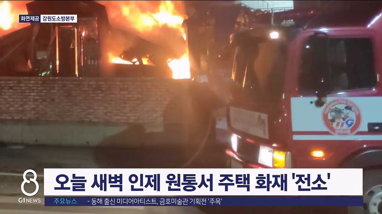 오늘 새벽 인제 원통서 주택 화재 '전소'