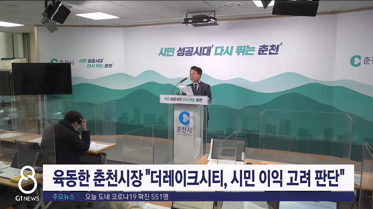 육동한 춘천시장은 "이 사업이 춘천에 도움이 되고 이익에 부합한다고 판단했지만, 경찰 수사 방향 등에 대한 위험 요소를 고려하지 않을 수 없어 최종 협약 체결을 보류했다"고 밝혔습니다.