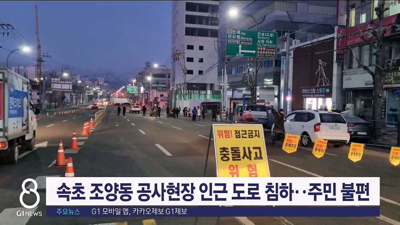 속초 조양동 공사현장 인근 도로 침하..주민 불편