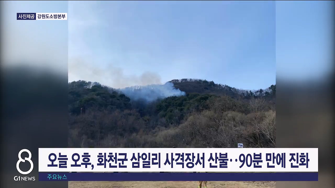오늘(15일) 오후 4시 20분쯤 화천군 사내면 삼임리 사격장에서 산불이 발생해 1시간 30분 만에 꺼졌습니다.