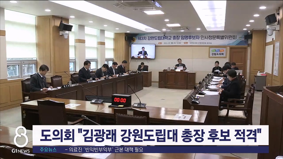 강원도의회가 김광래 강원도립대 총장 후보자 인사청문 보고서를 적격으로 채택했습니다.