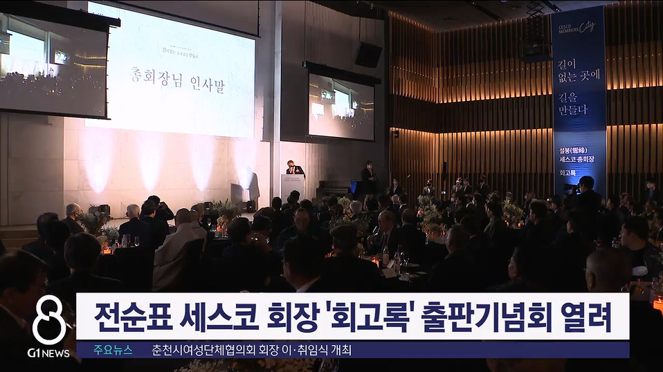 출판 기념회에는 윤세영 태영그룹 창업회장을 비롯해 김천수 강원도민회중앙회장, 최종찬 전 건교부 장관, 허인구 G1방송 사장 등 3백여 명이 참석했습니다.