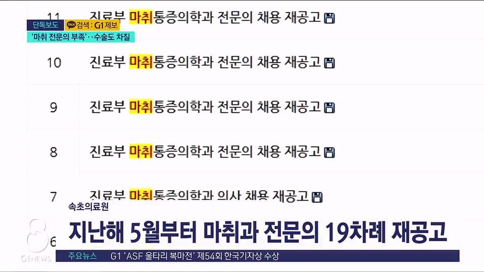 작년 4월 마취과 전문의 한명이 사직하면서, 공고를 낸 건데, 아직 구하지 못했습니다.