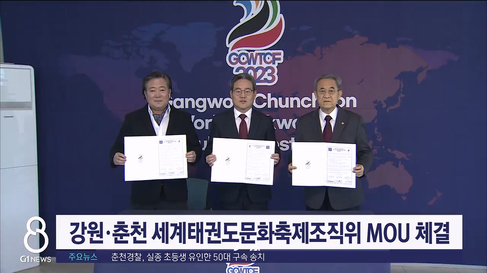 오는 8월 개최 예정인 '2023 강원·춘천 세계태권도문화축제'의 성공 개최를 위한 업무 협약이 체결됐습니다.