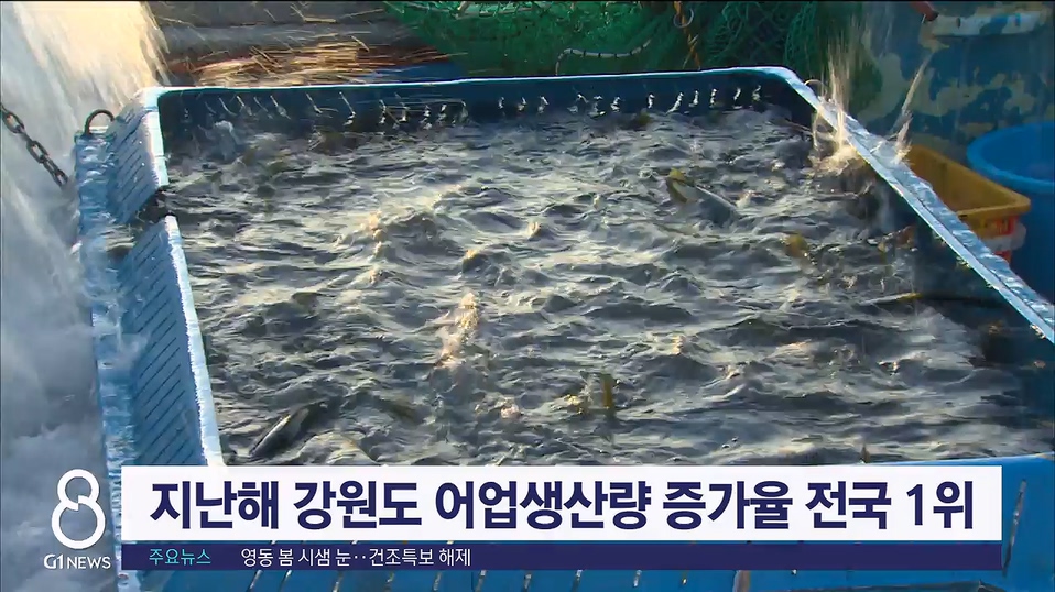 지난해 강원도내 어업생산량 증가율이 전국에서 전년대비 가장 높은 것으로 나타났습니다.