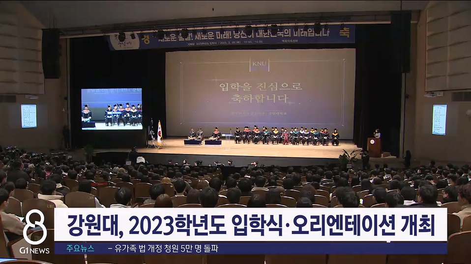 강원대학교가 주최한 2023학년도 입학식과 오리엔테이션이 오늘 강원대 백령아트센터에서 열렸습니다.