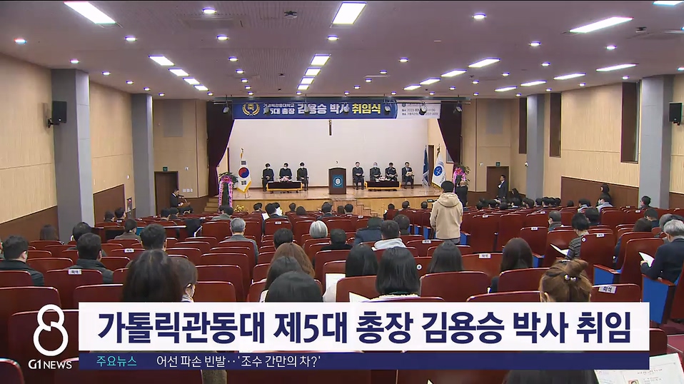 가톨릭관동대 제5대 김용승 총장의 취임식이 오늘 대학에서 열렸습니다.