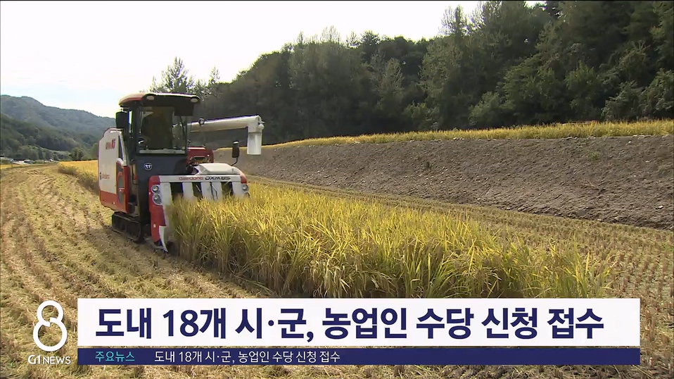 도내 18개 시군이 오는 6일부터 다음 달 28일까지 농업인 수당 신청을 받습니다.