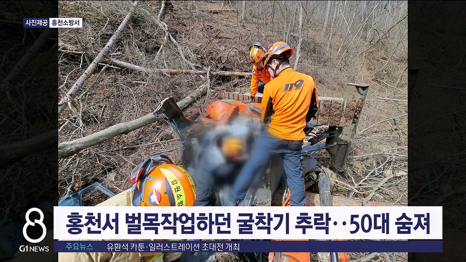 홍천서 벌목작업 하던 굴착기 추락‥50대 숨져