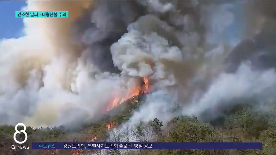 강원도는 대응 태세를 강화하는 한편, 도내에서 발생한 산불 원인 가운데 부주의가 49.8%를 차지하는 만큼, 시민들의 각별한 주의도 당부했습니다. G1뉴스 정창영입니다.