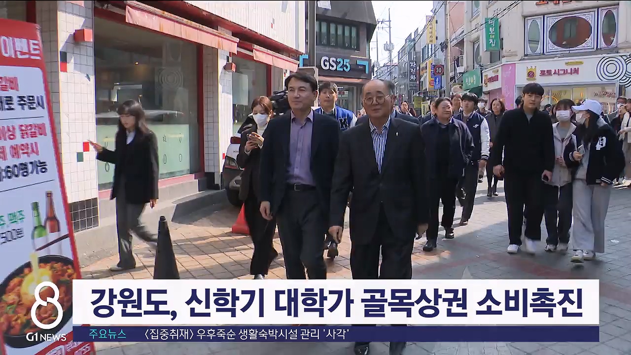 강원도가 오늘(7일) 강원대학교 후문 골목 상점가에서 신학기 대학가 소비촉진을 위한 행사를 열고, 관련 단체와 상생 협약을 맺었습니다.
