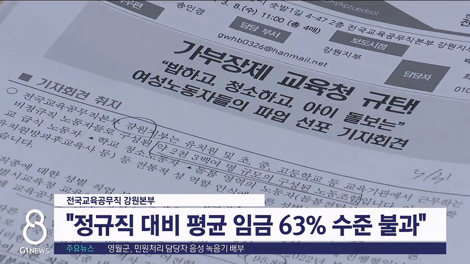 이에 대해 도교육청은 "직종에 따른 임금 격차는 존재해도, 성별에 따른 임금 격차는 존재하지 않는다"며 "교육공무직의 처우 개선을 위해 노력하고 있다"고 강조했습니다.