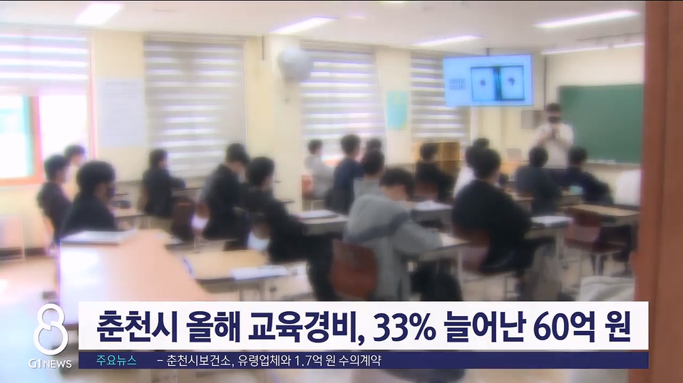 춘천시는 올해 지역내 유치원과 초·중·고교에 대한 교육경비 예산을 전년 대비 15억 원 늘어난 60억 원을 지원한다고 밝혔습니다.