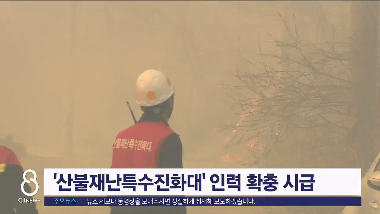 연일 계속된 건조특보로 산불 위험지수가 높아지는 가운데, 산불 재난 대응을 위한 '산불재난특수진화대' 인력 확충이 시급한 것으로 나타났습니다.