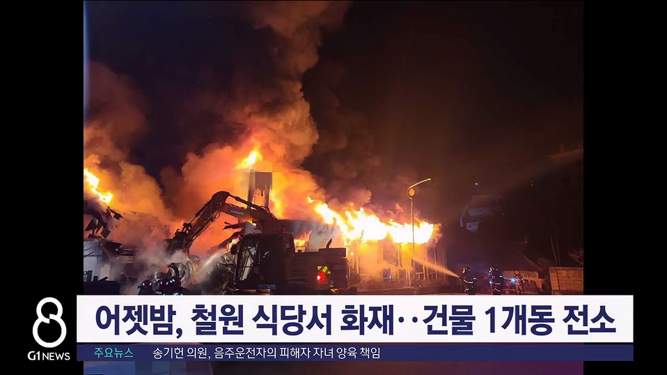 어젯밤 철원 식당서 화재..건물 1개동 전소