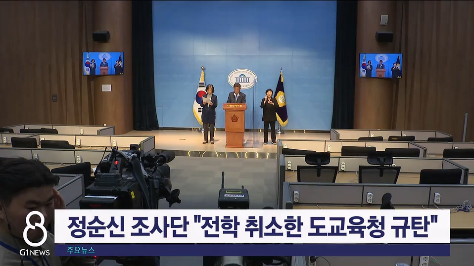 지난 17일 횡성 민사고를 방문한 '정순신 검사특권 진상조사단 T/F'가 오늘(20일) 국회 소통관에서 기자회견을 열고, 강원도 교육청의 가해 학생 강제 전학 처분 조치 취소 결정을 규탄했습니다.