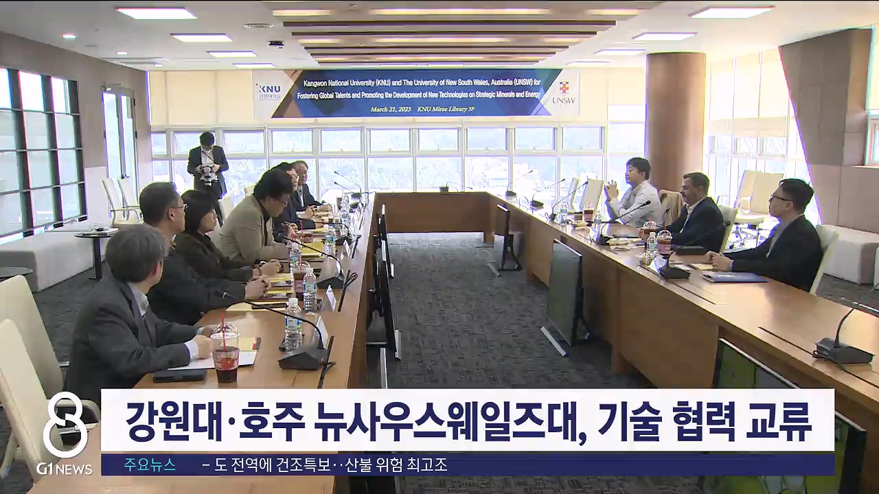 강원대학교 링크 3.0 사업단이 오늘(21일) 교내 미래도서관에서 호주 뉴사우스웨일즈 대학과 '한국 호주간 국가핵심광물 기술 협력을 위한 교류회'를 가졌습니다.
