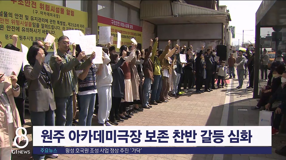 원주 아카데미극장 보존 사업을 둘러싸고 지역 내 찬반 갈등이 심화되고 있습니다.