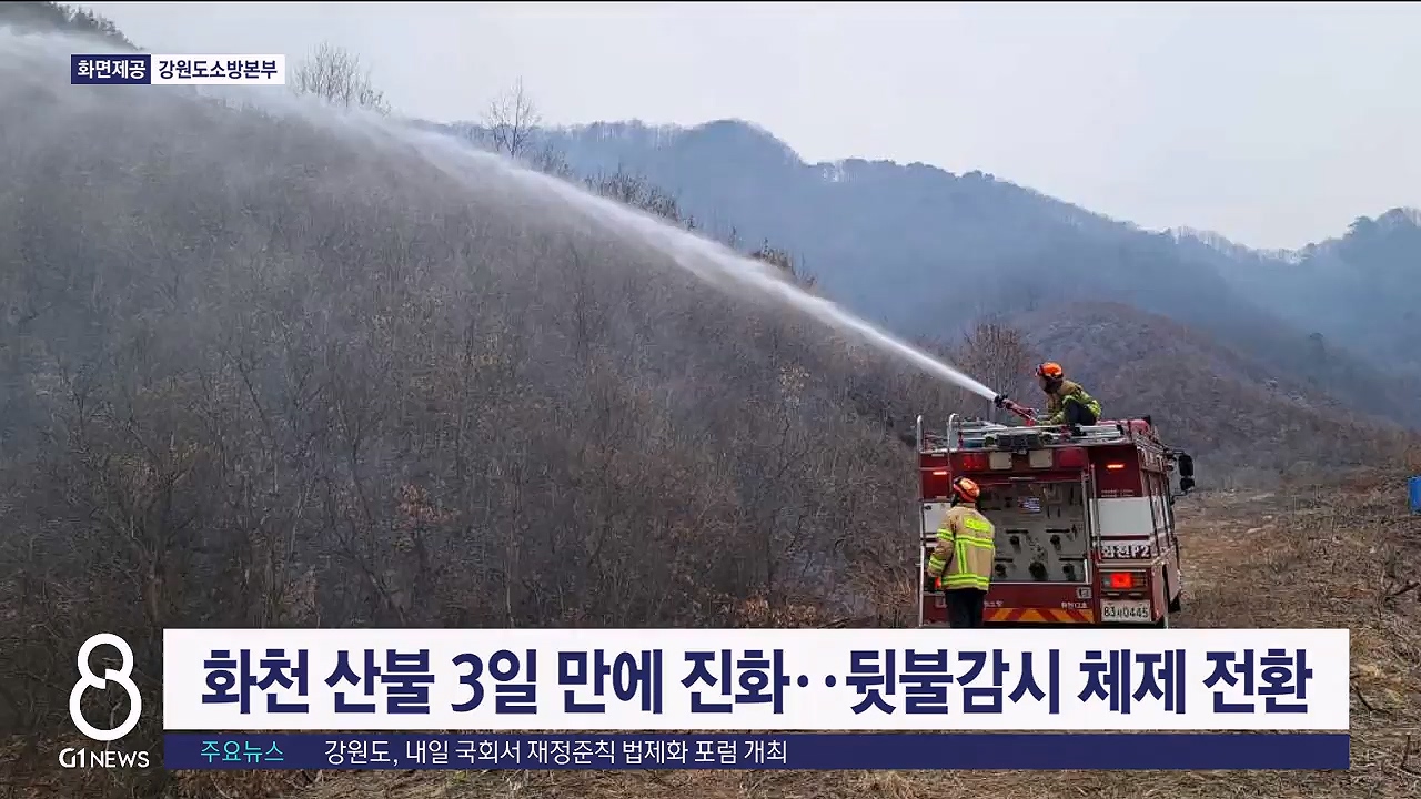 화천 산불 3일 만에 진화..뒷불감시 체제 전환