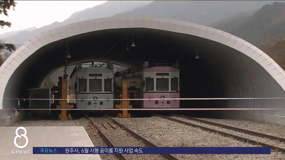 원주시는 똬리굴 관광사업을 위해 54억 원이나 들여 관광열차 2대를 구입했습니다.