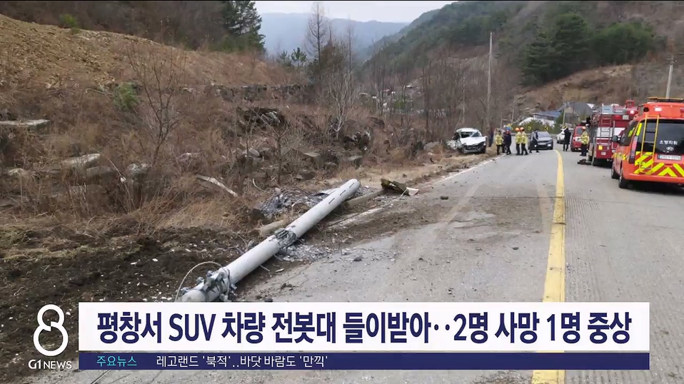 평창서 SUV차량 전봇대 들이받아..2명 사망 1명 중상
