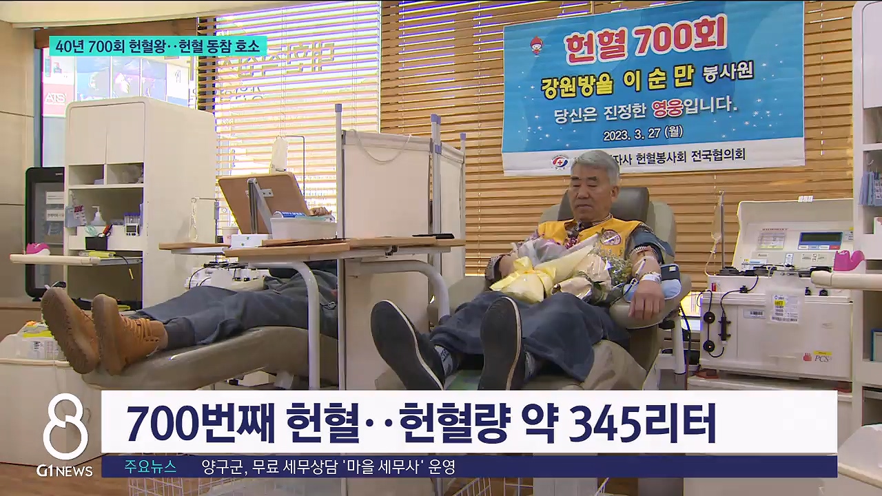 40년 동안 700회나 헌혈을 한 강원도 헌혈왕이 탄생했습니다.
