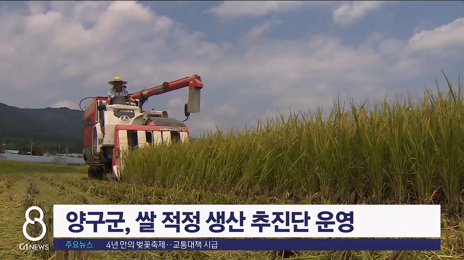 양구군이 쌀 수급을 안정을 위해 연말까지 쌀 적정 생산 추진단을 구성해 운영합니다.