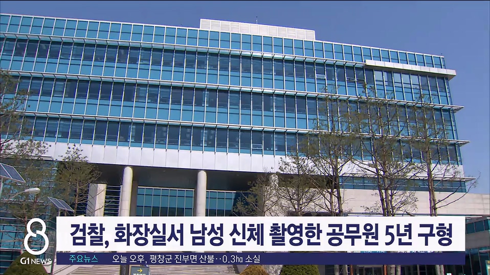 화장실에서 다른 남성의 신체를 수십 차례 촬영한 혐의로 기소된 공무원에게 검찰이 징역 5년을 구형했습니다.