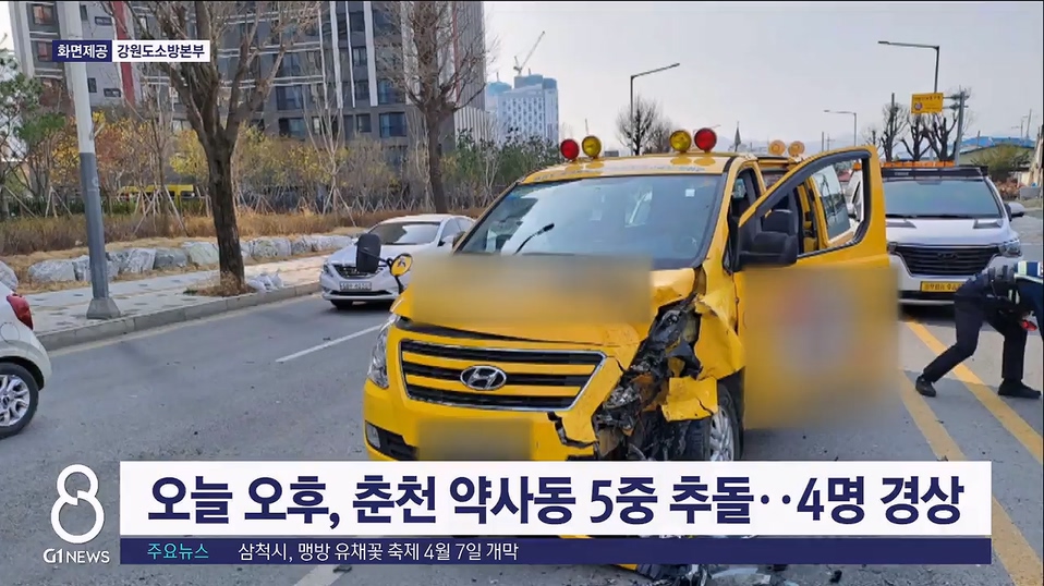 오늘 오후, 춘천 약사동 5중 추돌..4명 경상