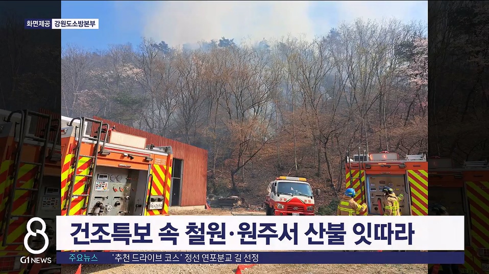 오늘 강원도 전역에 건조특보가 내려진 가운데 철원과 원주에서 산불이 잇따라 발생했습니다.