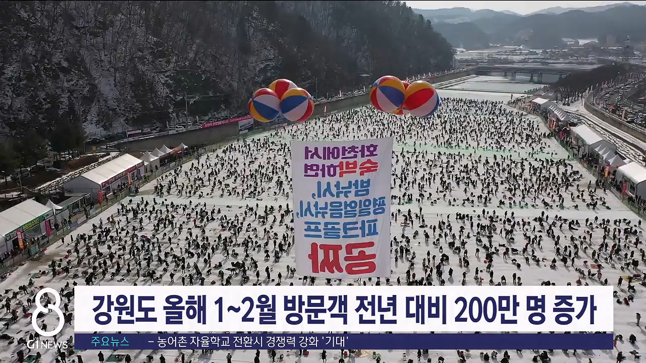 강원도는 지난 1월과 2월 방문객 수가 2300만명으로 집계돼, 전년보다 10% 증가했다고 밝혔습니다.