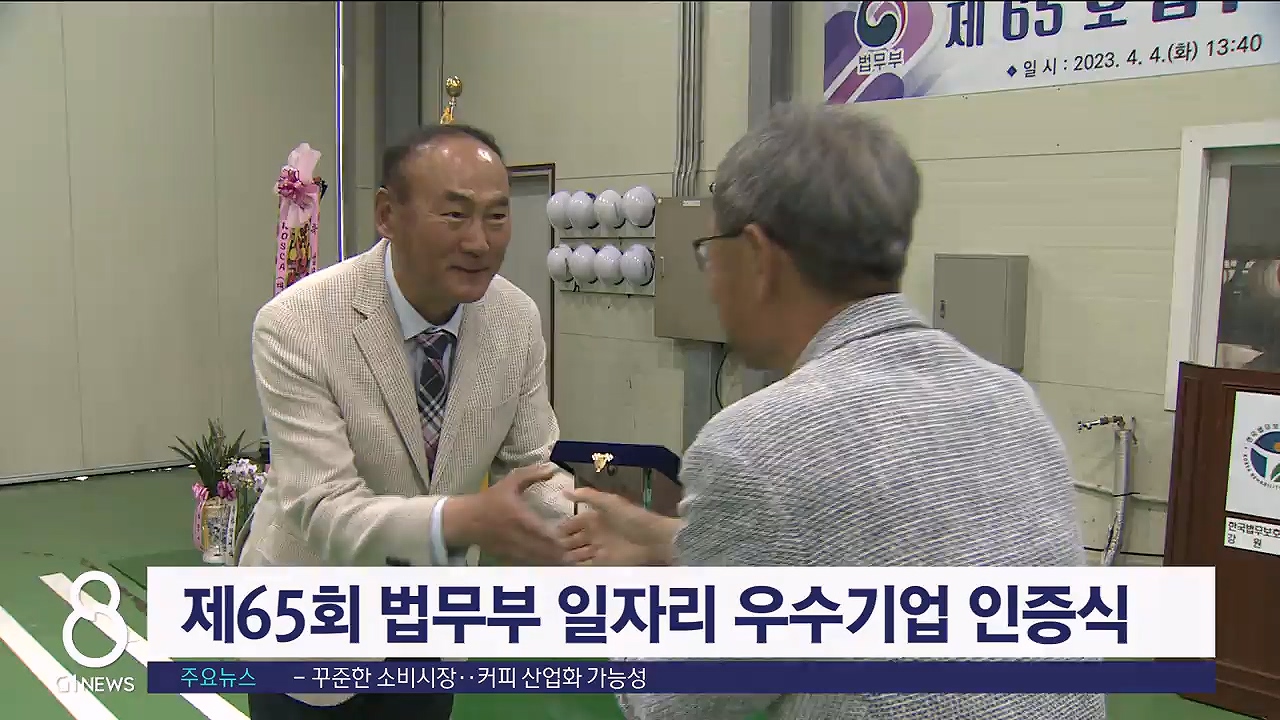 법무부의 일자리 우수기업 인증식이 오늘(4일) 춘천 한빛기업에서 열렸습니다.