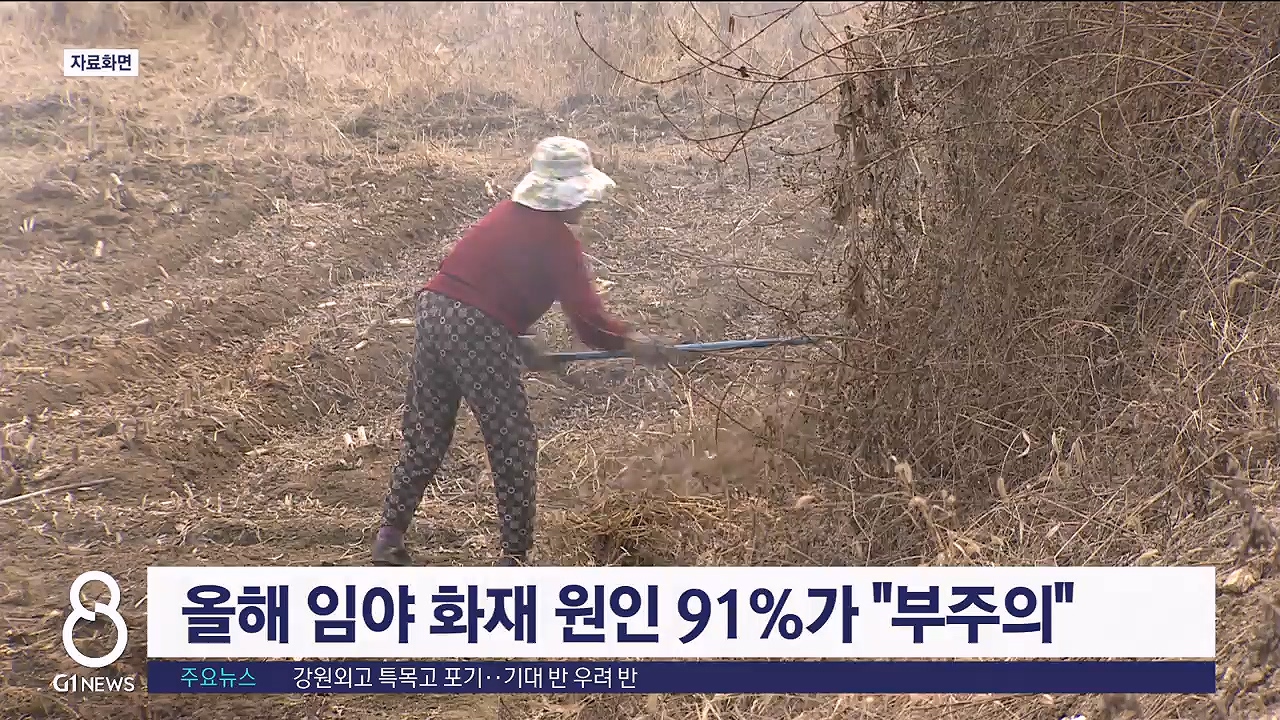 올해 산과 들판에서 발생한 임야화재 가운데 91%가 부주의에 의한 것으로 나타났습니다.