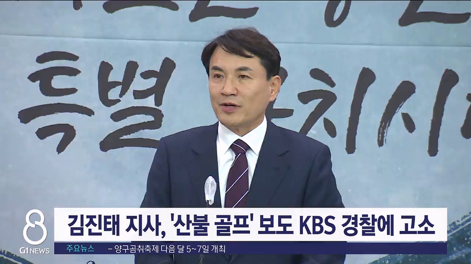 김진태 강원도지사가 '산불 골프' 보도와 관련해 KBS를 허위사실과 명예훼손 혐의로 경찰에 고소했습니다.