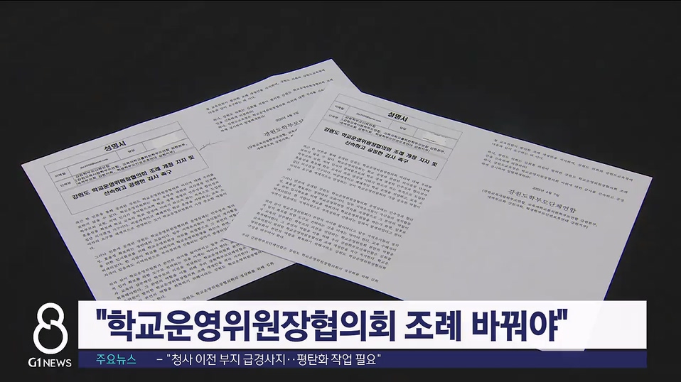 강원도학부모단체연합이 강원도 학교운영위원장협의회 조례 개정을 촉구했습니다.