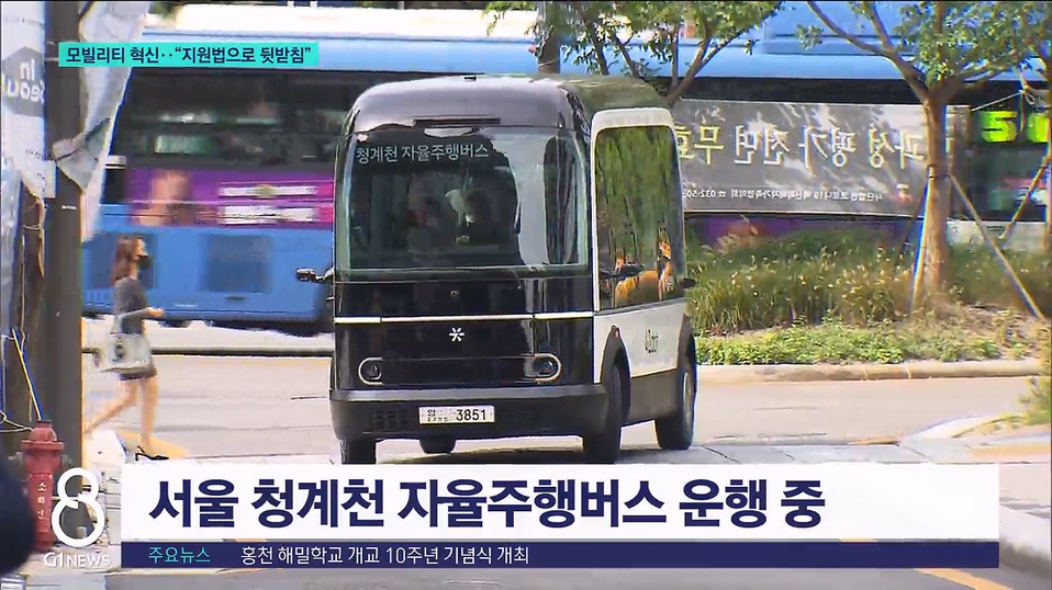 지난해 말부터 서울 청계천 일대를 오가는 자율주행버스가 운행되고 있습니다.