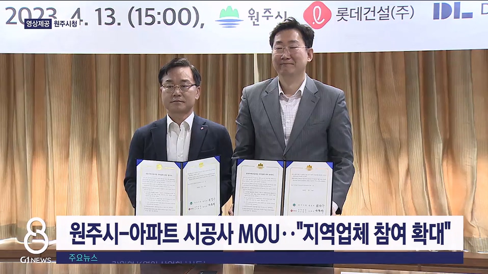 원주시는 아파트 시공사와 업무협약을 맺고, 아파트 공사에 지역 건설업체의 참여를 늘리기로 했습니다.