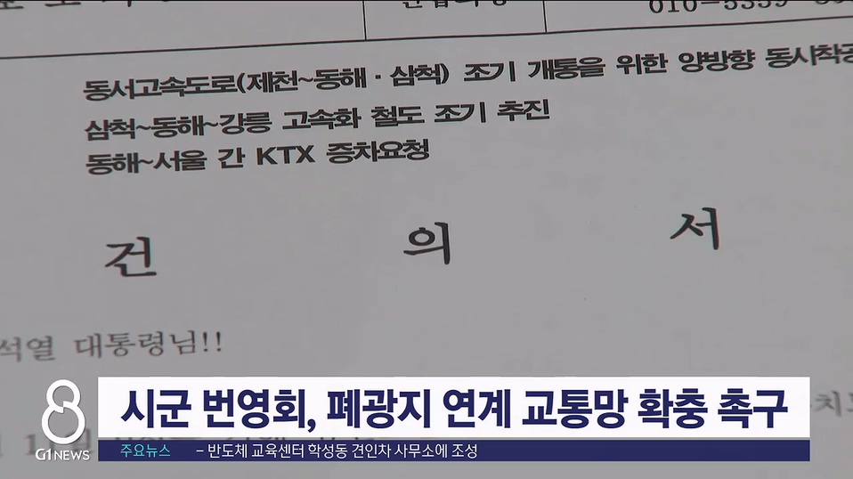 번영회 연합회는 건의문을 통해, "폐광지와 동해항만 활성화 등을 위해서는 삼척~제천간 동서고속도로 조기 개통이 필수 과제"라며 양방향 동시 착공을 요청했습니다.