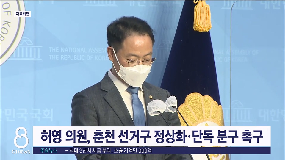 허영 의원과 춘천시의회 더불어민주당 의원들은 오늘(19일) 국회에서 기자회견을 갖고, 춘천시 국회의원 선거구의 정상화와 단독 분구를 촉구했습니다.