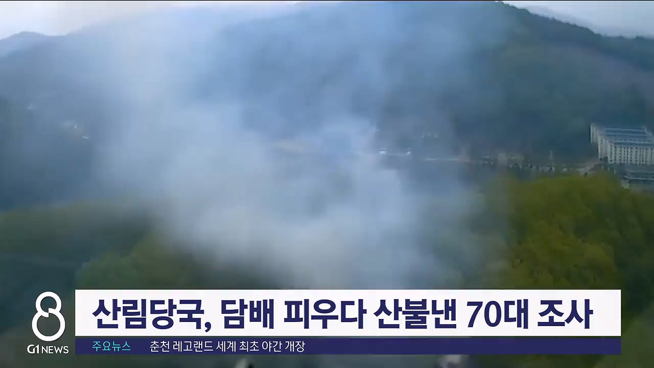 어제(23일) 원주에서 담배를 피우고 꽁초를 버려 산불을 낸 70대가 피의자로 입건됐습니다.